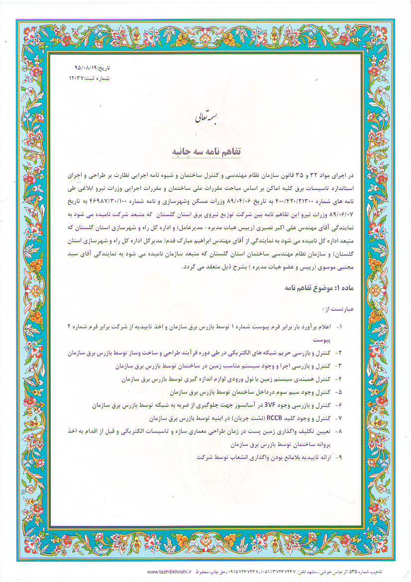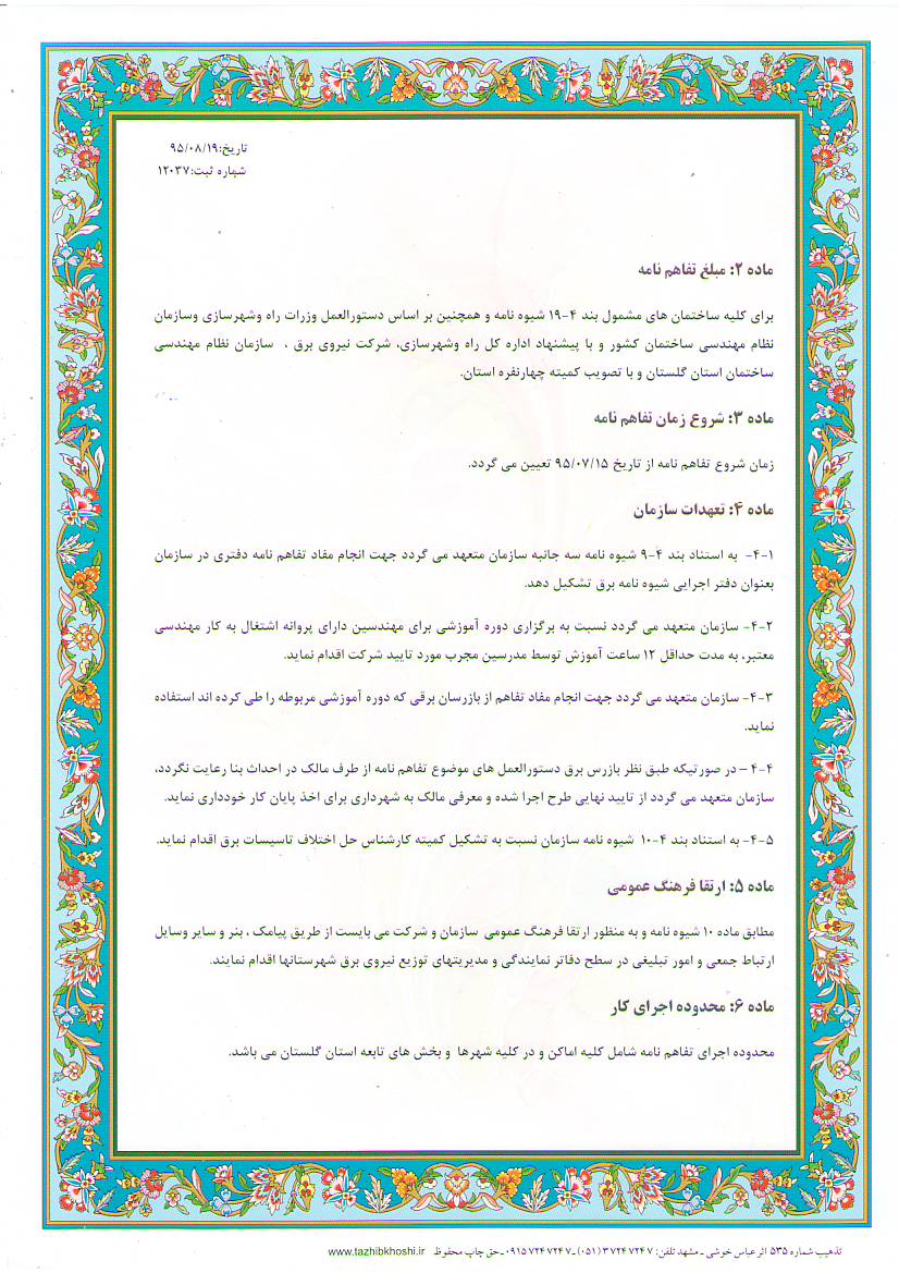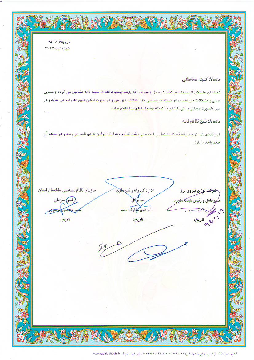 تفاهم نامه شیوه نامه برق